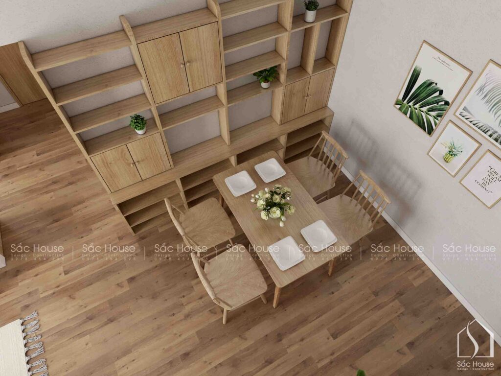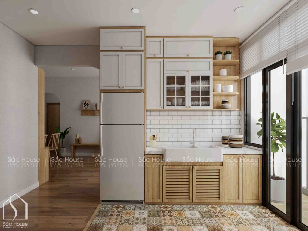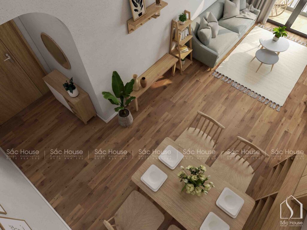 • Tông màu trung tính chủ đạo, kết hợp hài hòa giữa gỗ tự nhiên và sắc trắng tinh khôi.