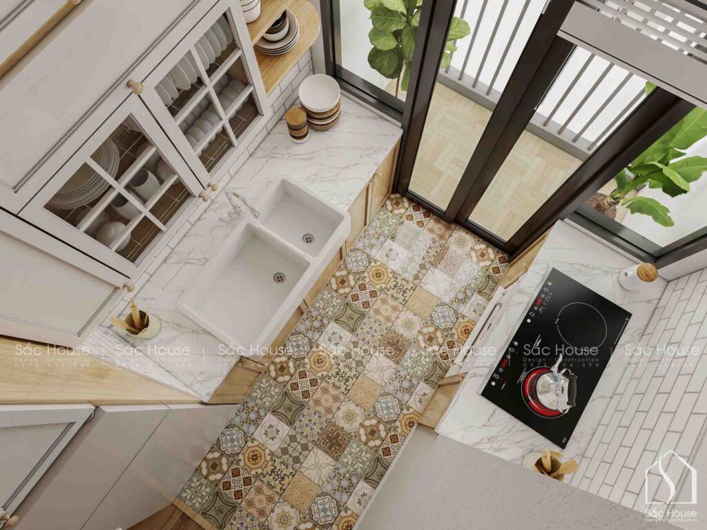 • Phòng khách – bếp – bàn ăn liên thông, giúp không gian thêm thoáng đãng và dễ dàng kết nối thành viên trong gia đình.