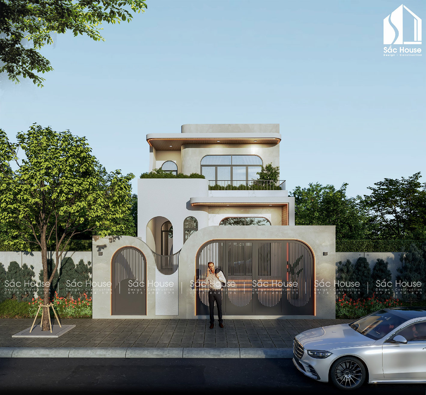 Ngôi nhà không chỉ là nơi để ở, mà còn là không gian phản ánh gu thẩm mỹ, phong cách sống và cả câu chuyện riêng của gia chủ. Với dự án lần này, Sắc House đã khéo léo kết hợp giữa các yếu tố hiện đại và thiên nhiên, mang đến một tổng thể hài hòa và ấn tượng. Mỗi đường nét kiến trúc, từ cổng nhà với những đường cong mềm mại, đến ban công thoáng đãng, đều được chăm chút tỉ mỉ để đảm bảo sự đồng bộ và tính thẩm mỹ cao.