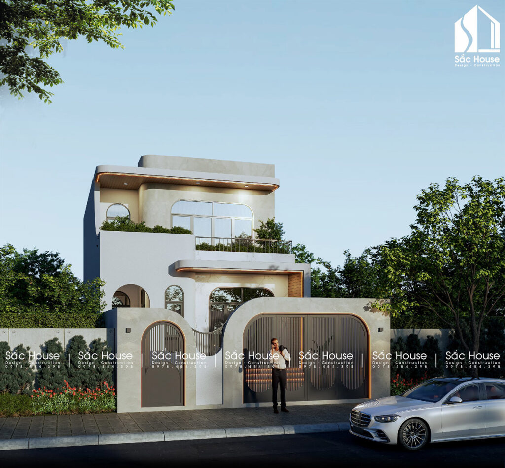 Ngôi nhà không chỉ là nơi để ở, mà còn là không gian phản ánh gu thẩm mỹ, phong cách sống và cả câu chuyện riêng của gia chủ. Với dự án lần này, Sắc House đã khéo léo kết hợp giữa các yếu tố hiện đại và thiên nhiên, mang đến một tổng thể hài hòa và ấn tượng. Mỗi đường nét kiến trúc, từ cổng nhà với những đường cong mềm mại, đến ban công thoáng đãng, đều được chăm chút tỉ mỉ để đảm bảo sự đồng bộ và tính thẩm mỹ cao.