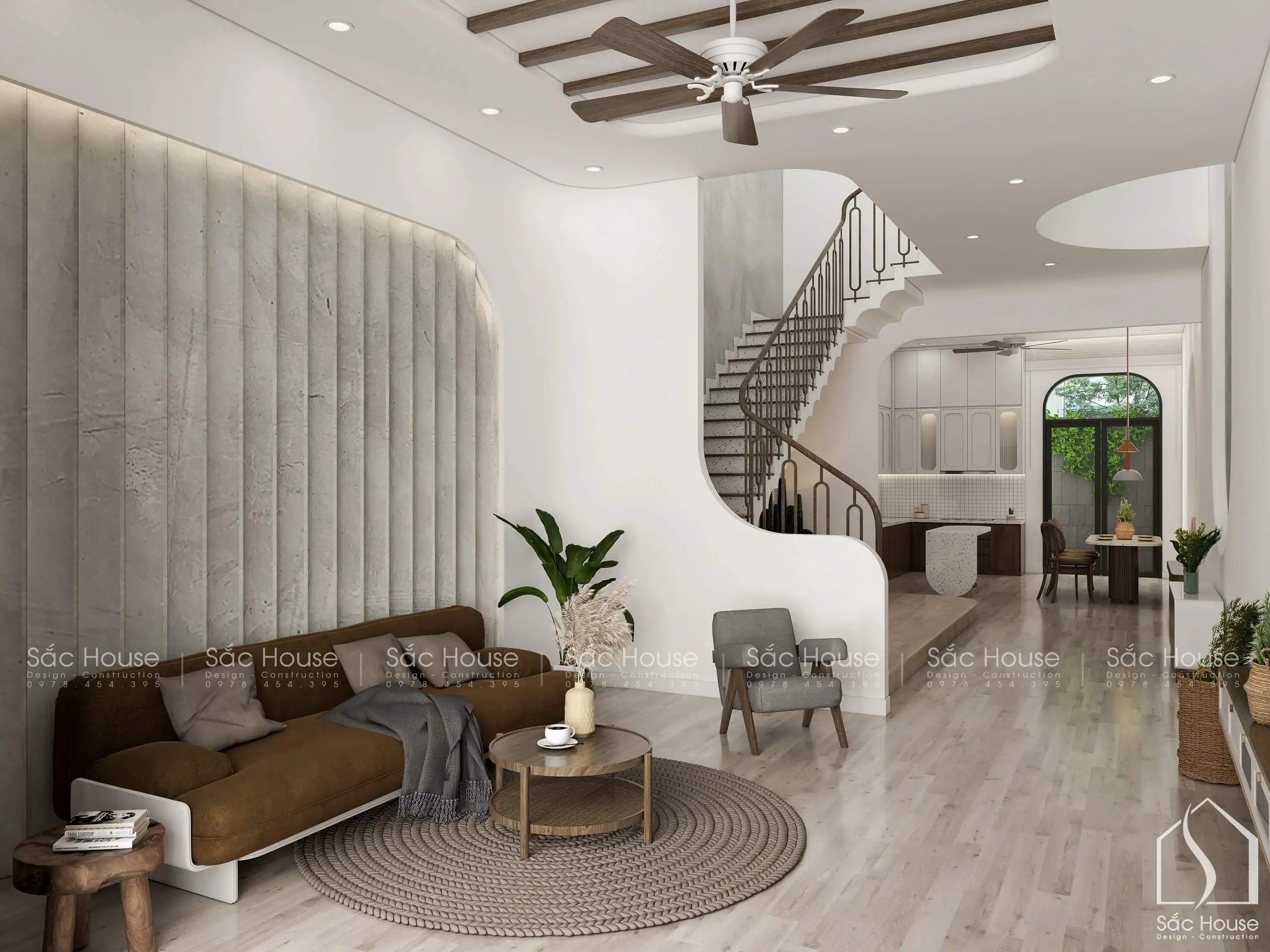 Công trình thực tế với không Trong nhịp sống đô thị hiện đại, một ngôi nhà không chỉ đơn thuần là nơi trú ngụ mà còn là không gian để thư giãn, tái tạo năng lượng và tận hưởng cuộc sống. Ngôi nhà phố 3 tầng này chính là minh chứng rõ nét cho sự kết hợp hài hòa giữa thẩm mỹ, công năng và thiên nhiên. Với thiết kế tinh tế, không gian thoáng đãng và vật liệu nội thất được lựa chọn kỹ lưỡng, công trình mang đến một trải nghiệm sống tiện nghi, thoải mái và tràn ngập ánh sáng tự nhiên.